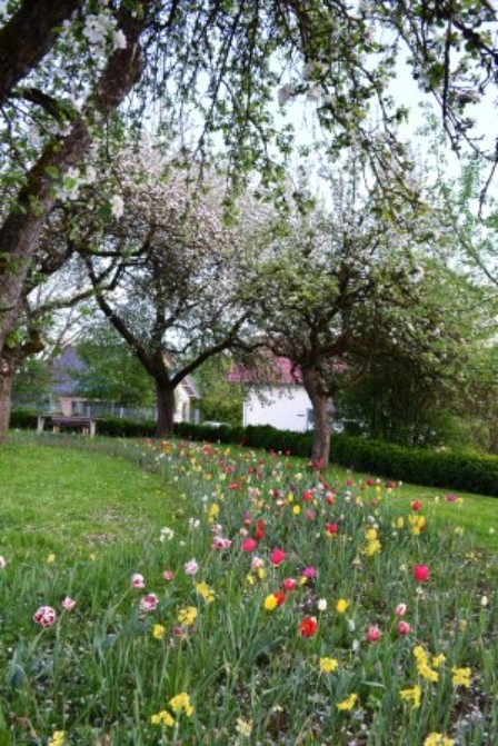 sich in die Sonne setzen und den Tag genießen oder mit den Kindern herumtollen. Im Obstgarten ist alles möglich!